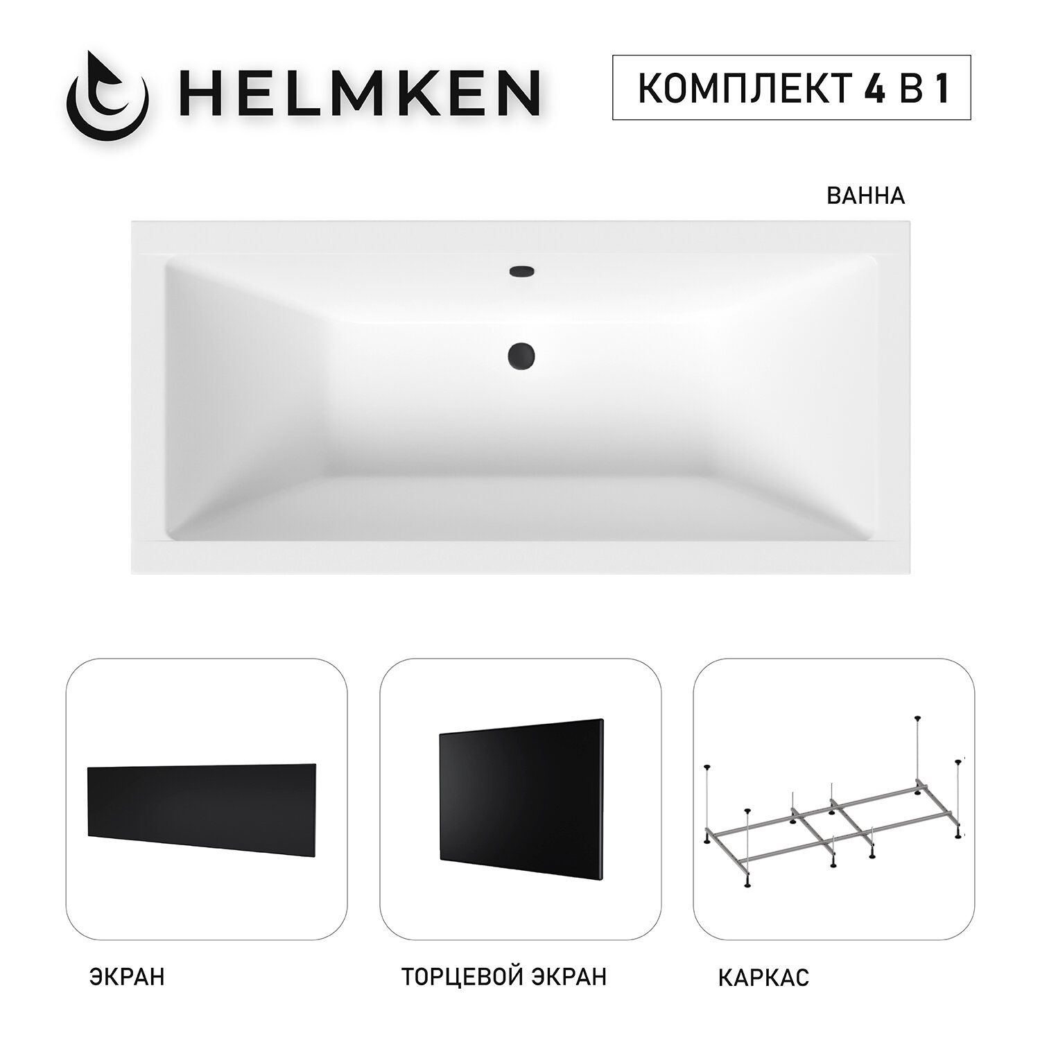 Ванна акриловая 180х80 Helmken Alvaro комплект 4 в 1: прямоугольная ванна, каркас, лицевой и торцевой экраны черного цвета: сравнение цен, характеристики, фото, актуальное наличие и цены.