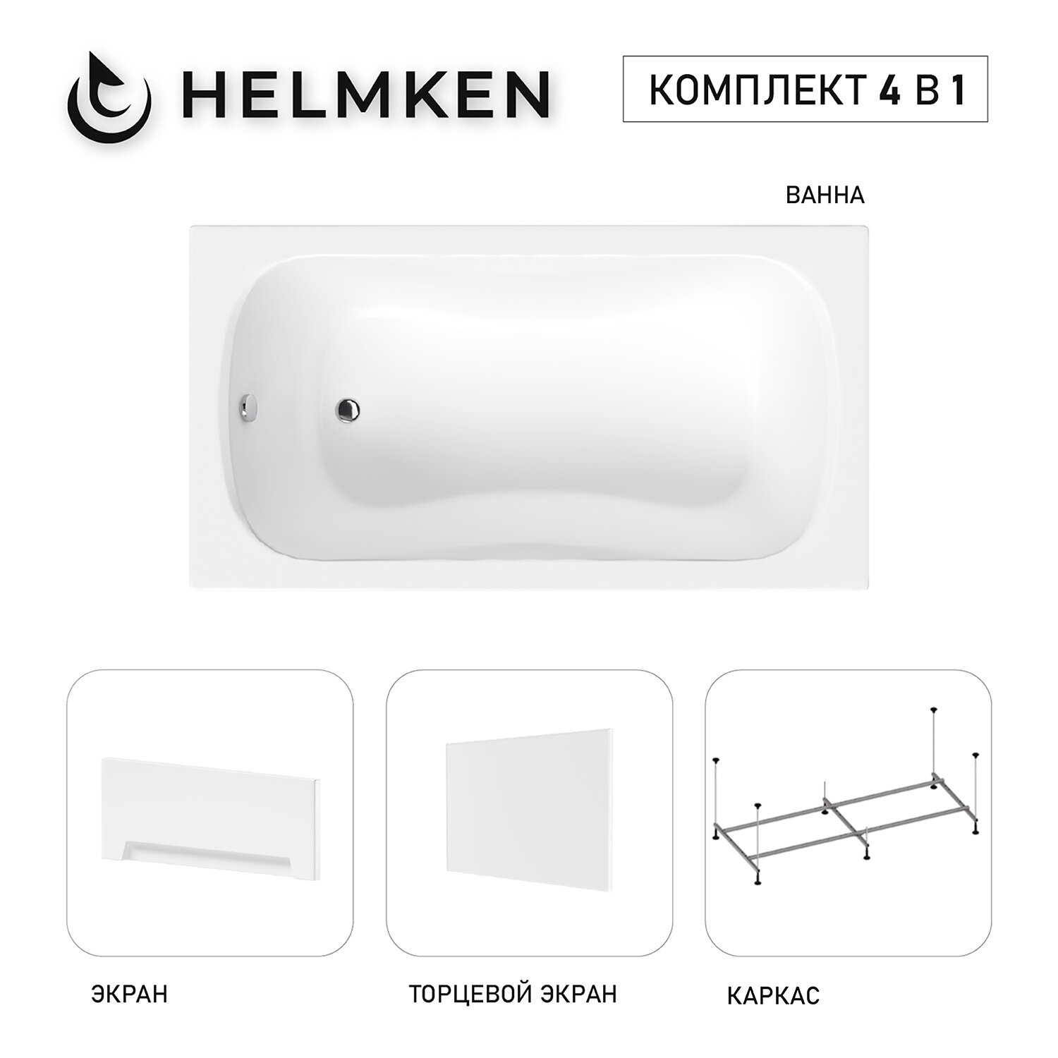 Ванна акриловая 130х70 Helmken Edelva комплект 4 в 1: прямоугольная ванна, каркас, лицевой и торцевой экраны белого цвета: сравнение цен, характеристики, фото, актуальное наличие и цены.