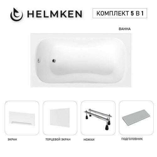 Акриловая ванна Helmken Edelva 130х70 комплект 5 в 1: ванна, ножки, серый подголовник, белые лицевой и торцевой экраны: сравнение цен, характеристики, фото, актуальное наличие и цены.