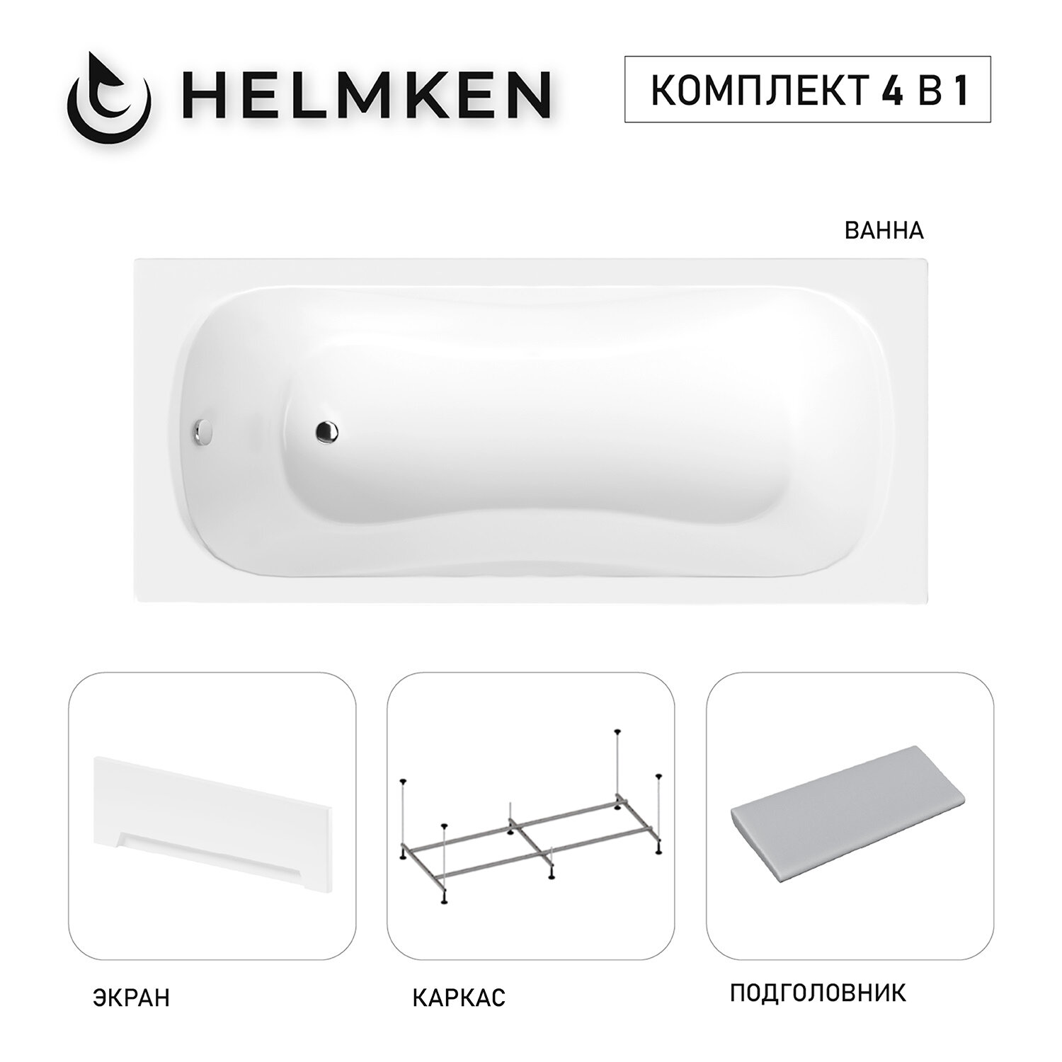 Купить Акриловая ванна Helmken Edelva 150х70 комплект 4 в 1: ванна, каркас, серый подголовник и белый лицевой экран с доставкой по всей России.
