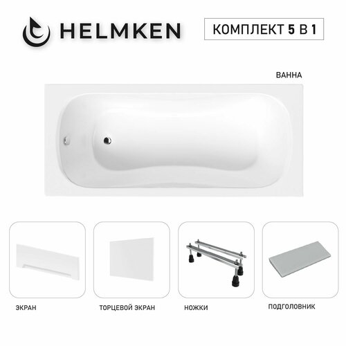 Акриловая ванна Helmken Edelva 170х70 комплект 5 в 1: ванна, ножки, серый подголовник, белые лицевой и торцевой экраны: сравнение цен, характеристики, фото, актуальное наличие и цены.