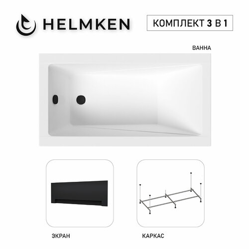 Ванна акриловая 120х70 Helmken Rivana комплект 3 в 1: прямоугольная ванна, каркас, лицевой экран черного цвета: сравнение цен, характеристики, фото, актуальное наличие и цены.