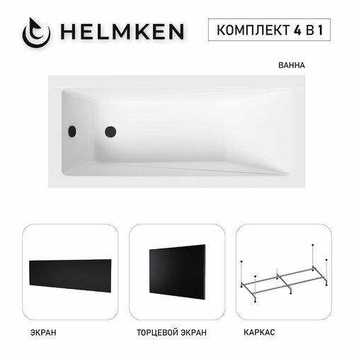 Ванна акриловая 160х70 Helmken Rivana комплект 4 в 1: прямоугольная ванна, каркас, лицевой и торцевой экраны черного цвета: сравнение цен, характеристики, фото, актуальное наличие и цены.