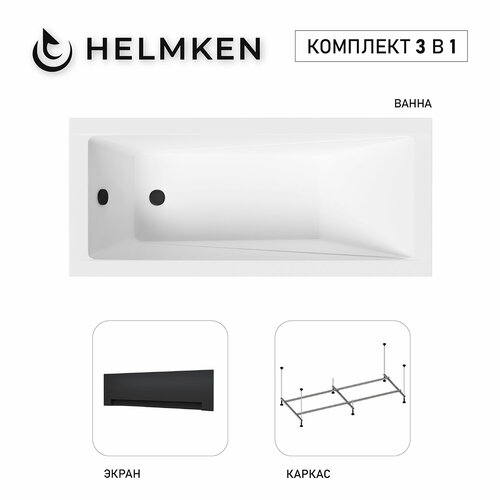 Акриловая ванна Helmken Rivana 170×70 комплект 3 в 1: ванна, каркас, черный лицевой экран: сравнение цен, характеристики, фото, актуальное наличие и цены.