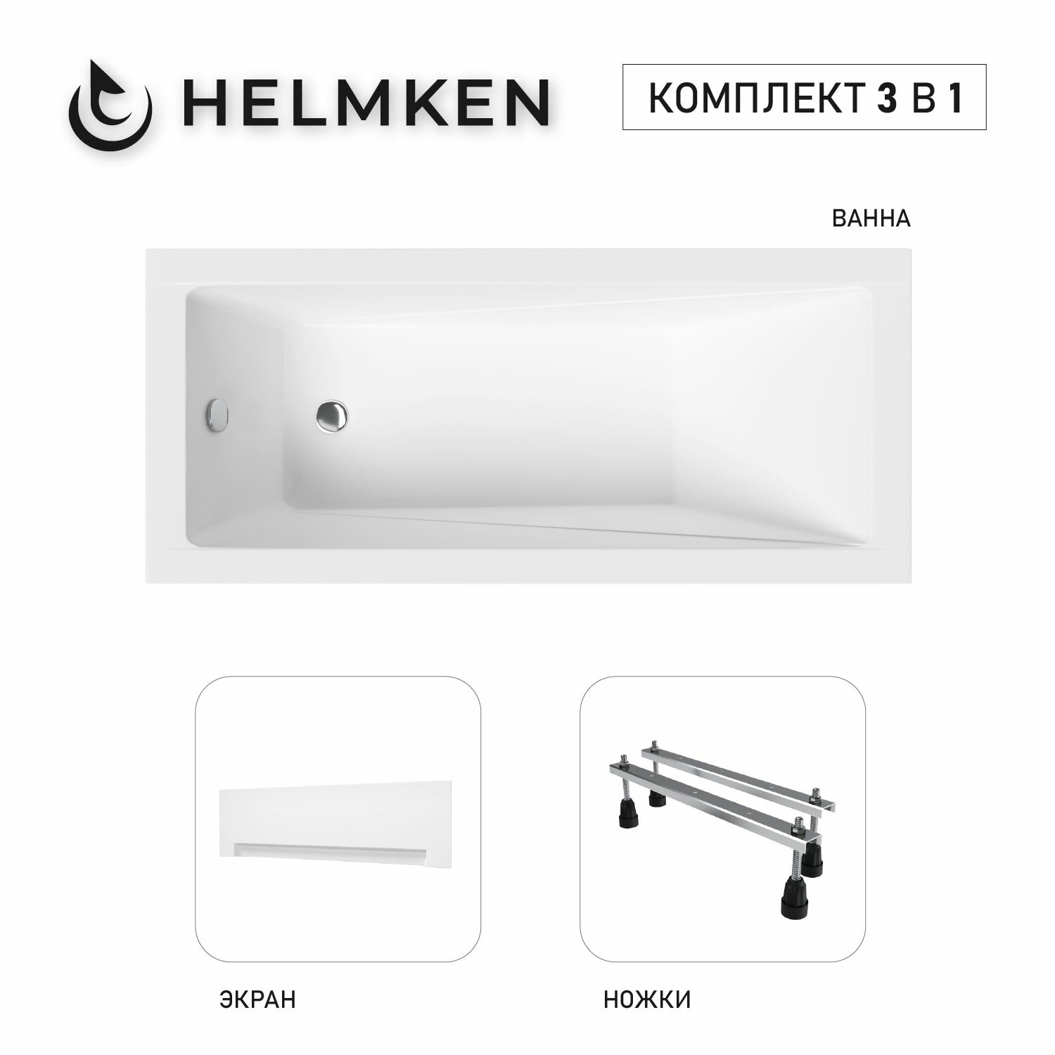 Купить Акриловая ванна Helmken Rivana 180×80 комплект 3 в 1: ванна, ножки, белый лицевой экран с доставкой по всей России.