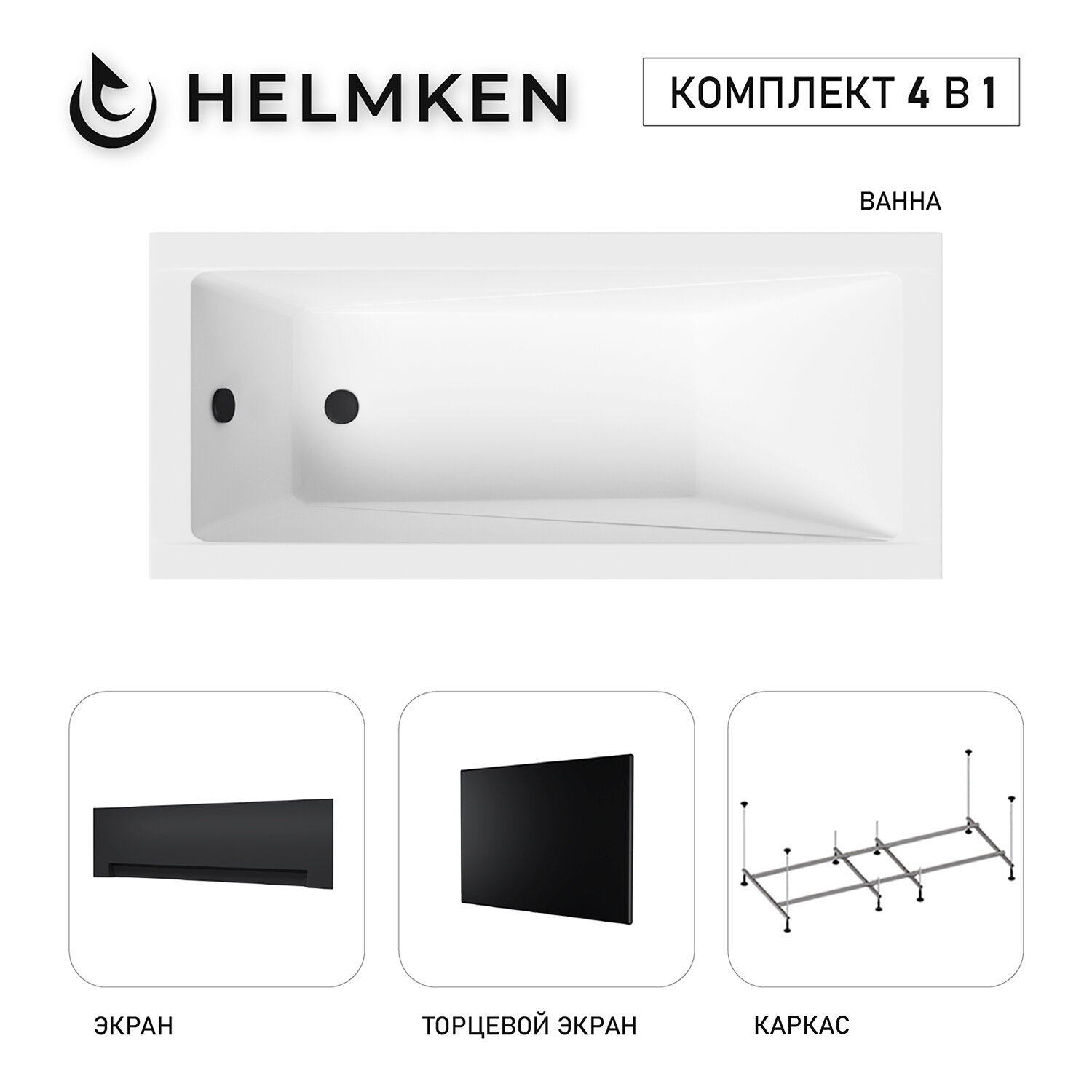 Купить Акриловая ванна Helmken Rivana 180×80 комплект 4 в 1: ванна, каркас, черные лицевой и торцевой экраны с доставкой по всей России.