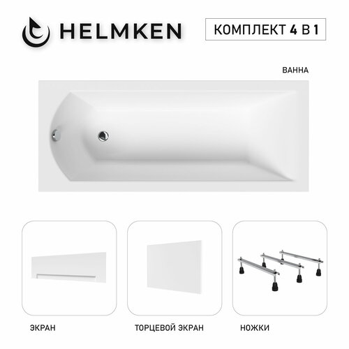 Купить Акриловая ванна Helmken Vespera 150×70 комплект 4 в 1: ванна, тройные ножки, белые лицевой и торцевой экраны с доставкой по всей России.