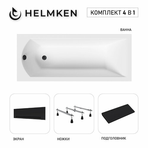 Купить Акриловая ванна Helmken Vespera 150×70 комплект 4 в 1: ванна, тройные ножки, черный подголовник и черный лицевой экран с доставкой по всей России.