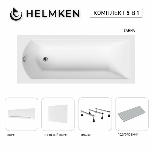 Купить Акриловая ванна Helmken Vespera 150×70 комплект 5 в 1: ванна, тройные ножки, подголовник, белые лицевой и торцевой экраны с доставкой по всей России.