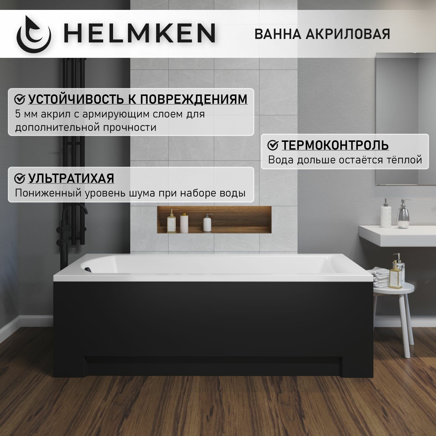 Ванна акриловая 170х70 Helmken Vespera комплект 4 в 1: прямоугольная ванна, ножки, лицевой и торцевой экраны черного цвета: сравнение цен, характеристики, фото, актуальное наличие и цены.