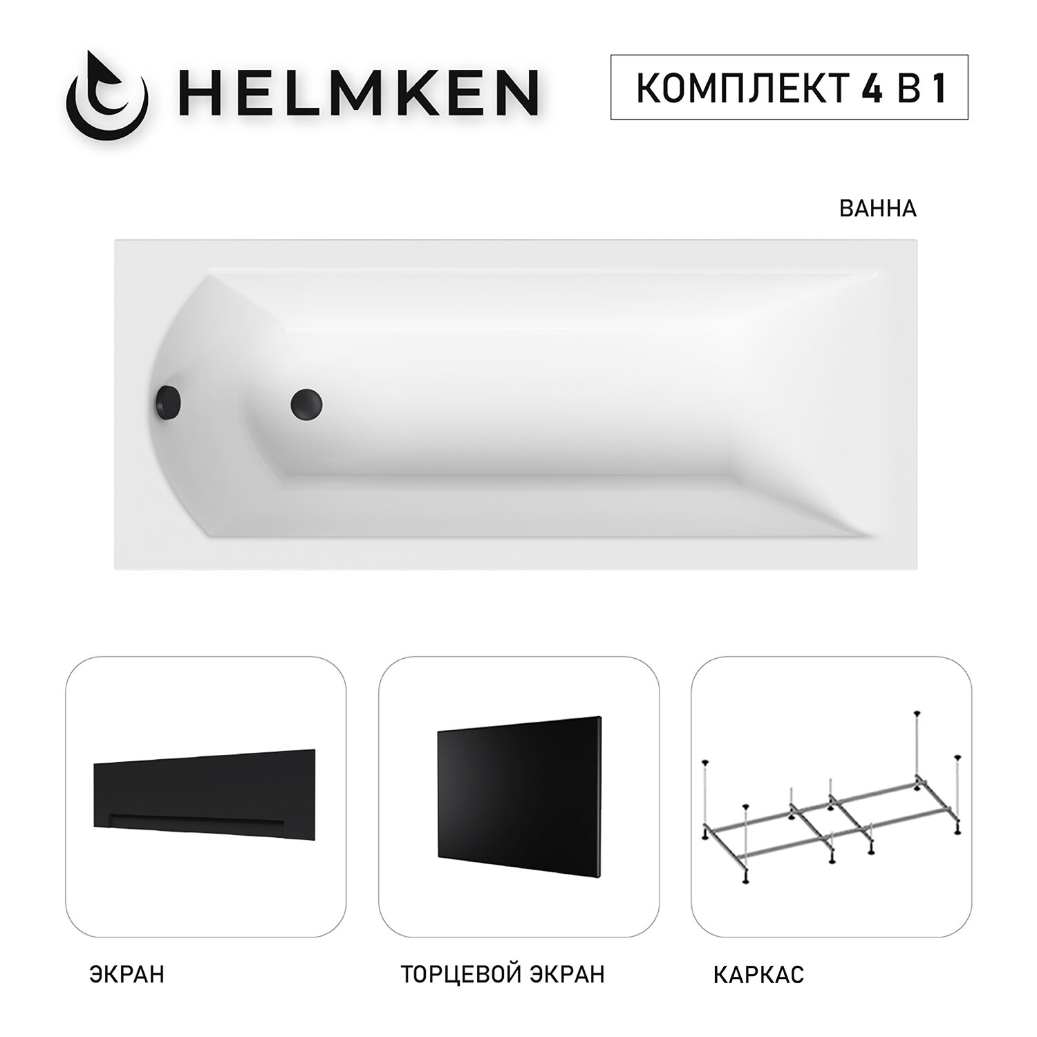 Купить Акриловая ванна Helmken Vespera 180×80 комплект 4 в 1: ванна, каркас, черные лицевой и торцевой экраны с доставкой по всей России.