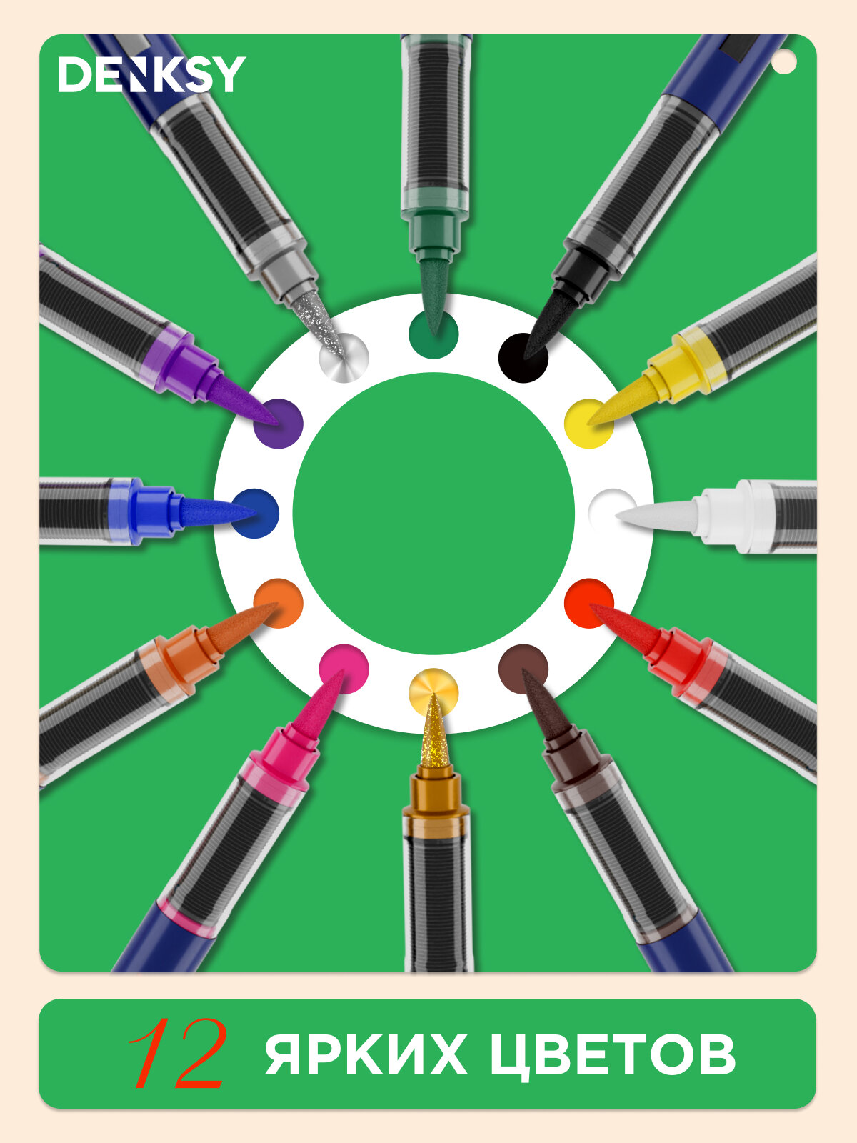 Купить Акриловые маркеры набор для рисования 12 цветов, DENKSY, толщина линии 1-5 мм. с доставкой по всей России.