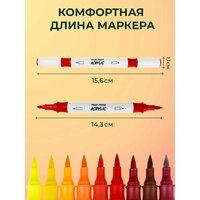 Цветные маркеры имеют двухстороннюю форму, что добавляет удобства в работе. Одний конец представлен кистью. Это позволяет варьировать толщину линий и добавлять детали в ваши произведения. Они также подходят для рисования по ткани, что откроет новые горизонты в ваших проектах.
