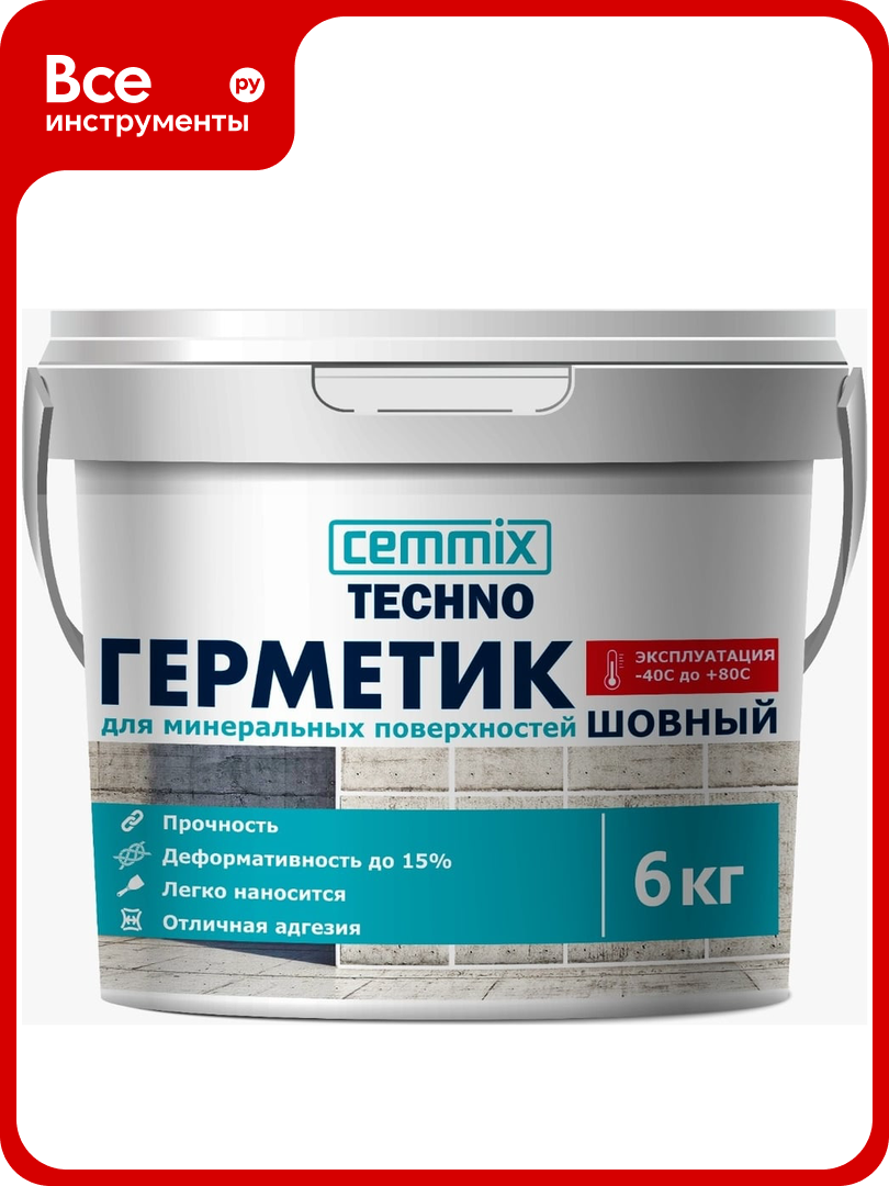 Акриловый герметик для минеральных поверхностей CEMMIX (серый; 6 кг) 84735737: сравнение цен, характеристики, фото, актуальное наличие и цены.