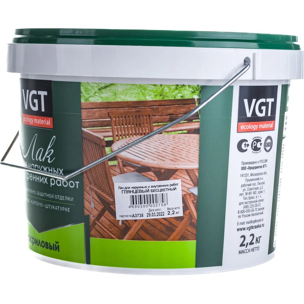 Купить Акриловый лак для наружных и внутренних работ VGT глянцевый, бесцветный 2,2 кг 11601878 с доставкой по всей России. Акриловый лак для наружных и внутренних работ VGT глянцевый, бесцветный 2,2 кг 11601878: сравнение цен, характеристики, фото, актуальное наличие и цены.