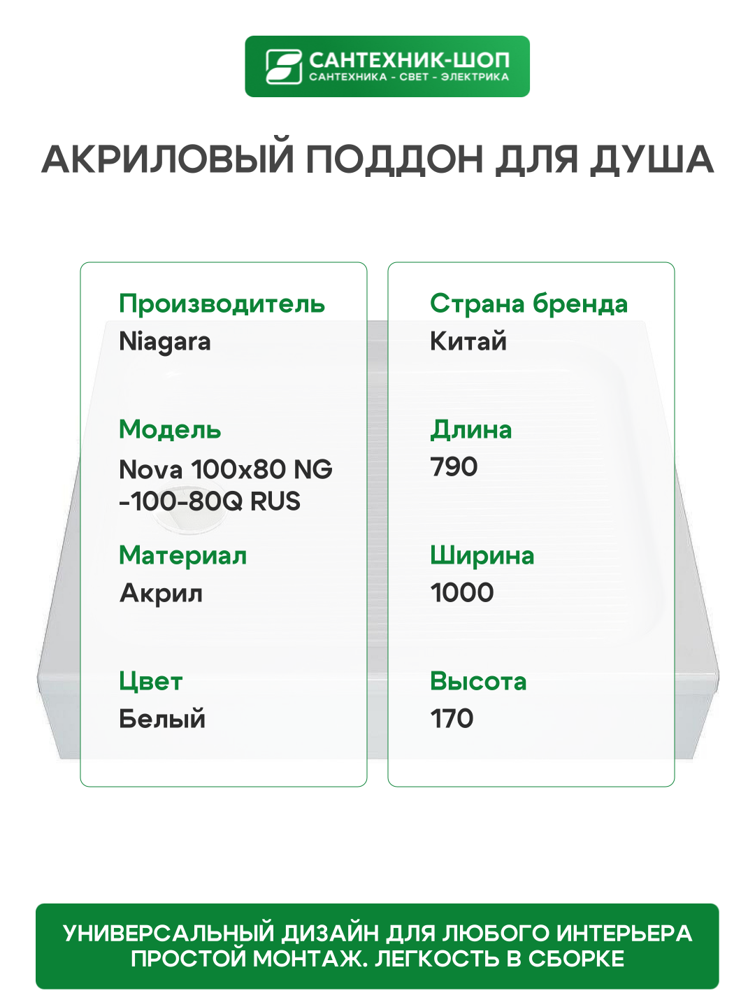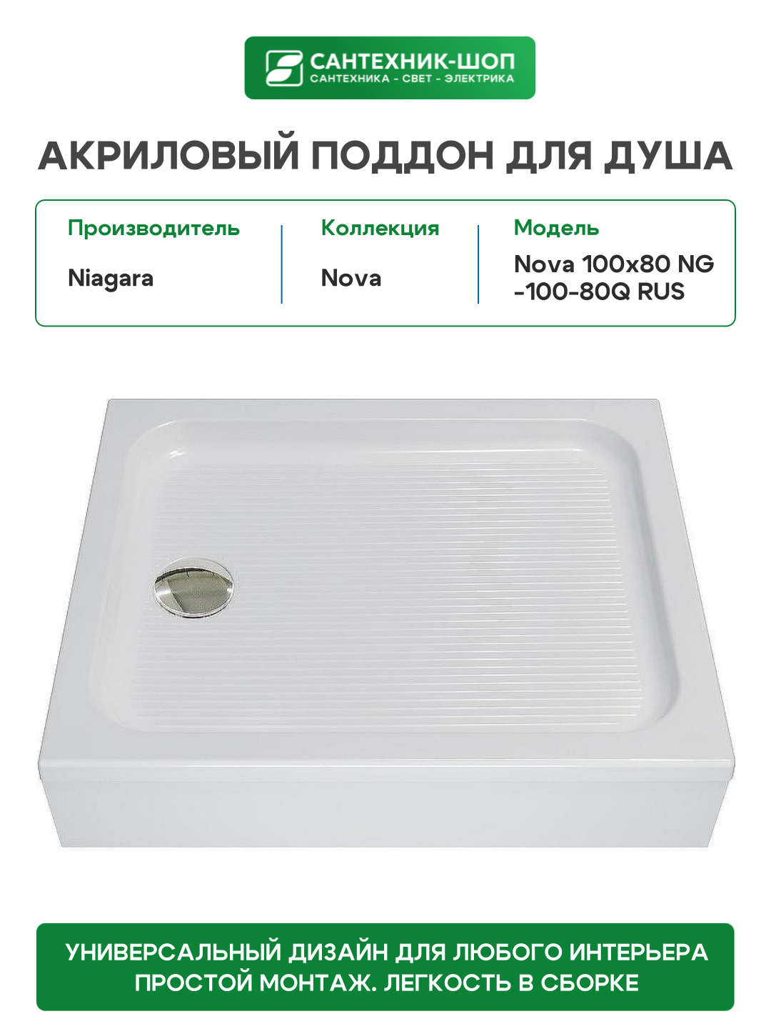 Акриловый поддон для душа Niagara Nova 100×80 NG-100-80Q RUS Белый: сравнение цен, характеристики, фото, актуальное наличие и цены.