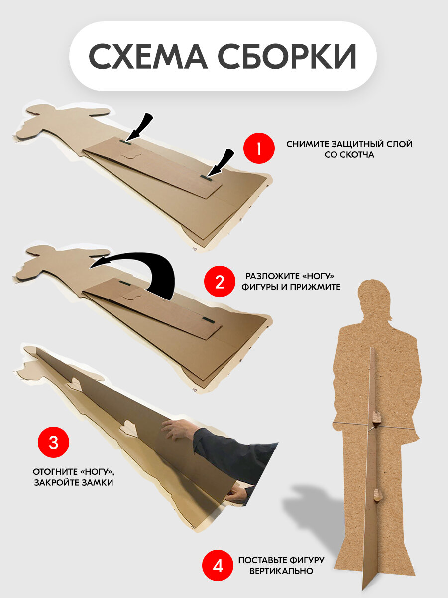 Ростовая фигура 1 шт. Коробка из гофрокартона 1 шт. Нога-стойка 1шт. QR-код с инструкцией