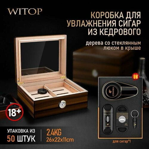 Коробка оснащена увлажнителем воздуха и гигрометром, которые помогут вам точно контролировать уровень влажности в коробке и обеспечить наилучшее состояние ваших сигар.
