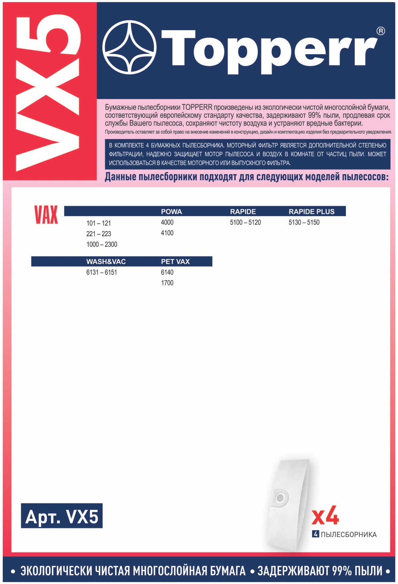 Аксессуар для пылесоса Пылесборники бумажные Topperr VX 5 4шт для VAX .