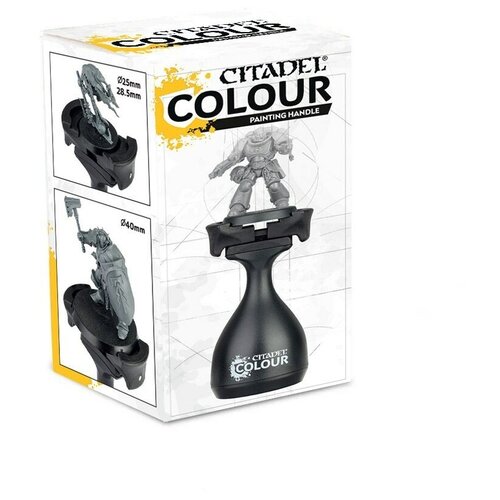 Действенный способ улучшить свой покрас Citadel Painting Handle - это специальный удобный держатель для миниатюр стандартного размера на подставках диаметром 25мм, 28мм, 32мм и 40мм. Устройство служит для облегчения процесса покраски моделей, ведь если вы когда-нибудь пытались красить миниатюры, то уж точно знаете что держать их в руках не так-то просто - пальцы быстро устают, а руки начинают дрожать, делая процесс еще более неудобным. С Citadel Painting Handle эти проблемы уйдут в прошлое. Держатель поможет вам перестать совершать досадные ошибки и помарки в процессе покраски, возникающие из-за дрожи в руках. Ведь держать в ладони удобную анатомическую грушевидную ручку Citadel Painting Handle намного удобнее, нежели пытаться удерживать на весу подставку.