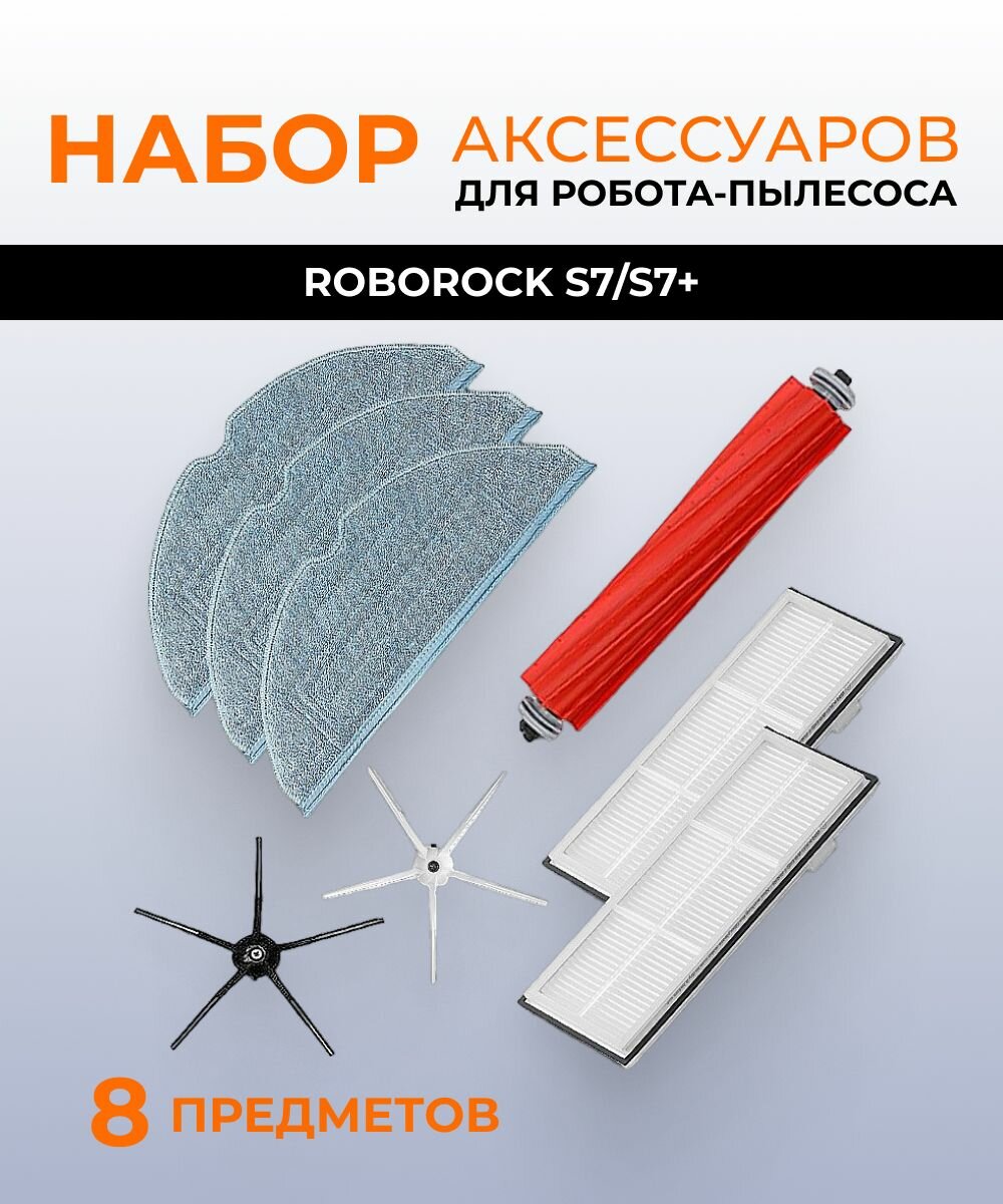 Купить Аксессуары для робота пылесоса Xiaomi Roborock S7 / S7 Plus : тряпка 3 шт, основная щетка 1 шт, боковая щетка 2 шт, hepa-фильтр 2 шт с доставкой по всей России.