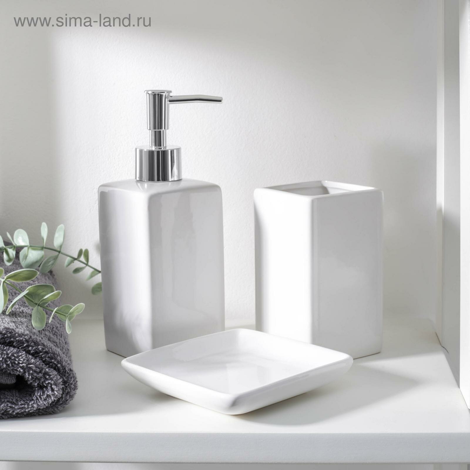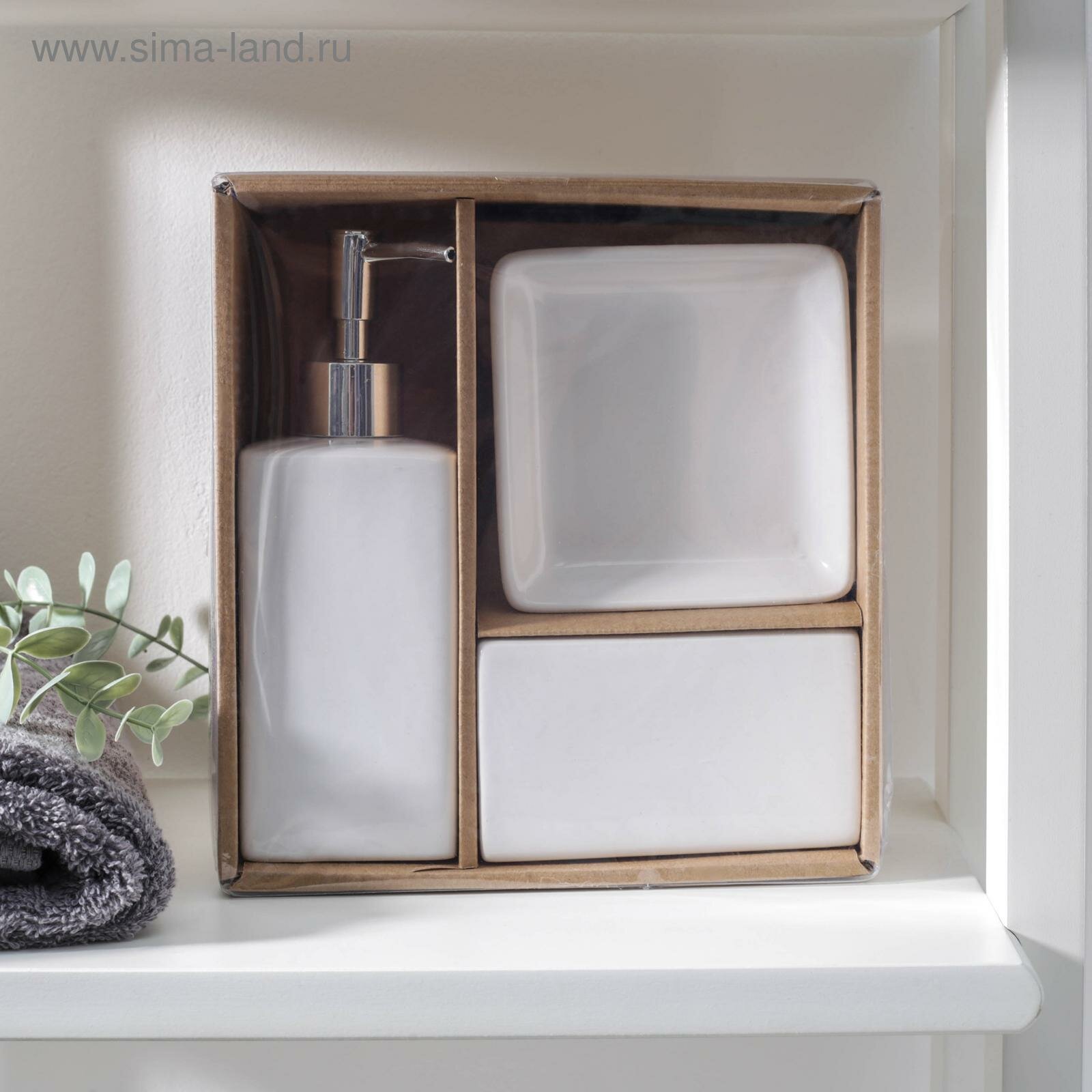 Аксессуары для ванной «Лодж», 3 предмета: мыльница, дозатор для мыла 350 мл, стакан, белые: сравнение цен, характеристики, фото, актуальное наличие и цены.