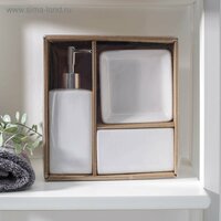 Купить Аксессуары для ванной «Лодж», 3 предмета: мыльница, дозатор для мыла 350 мл, стакан, белые с доставкой по всей России.