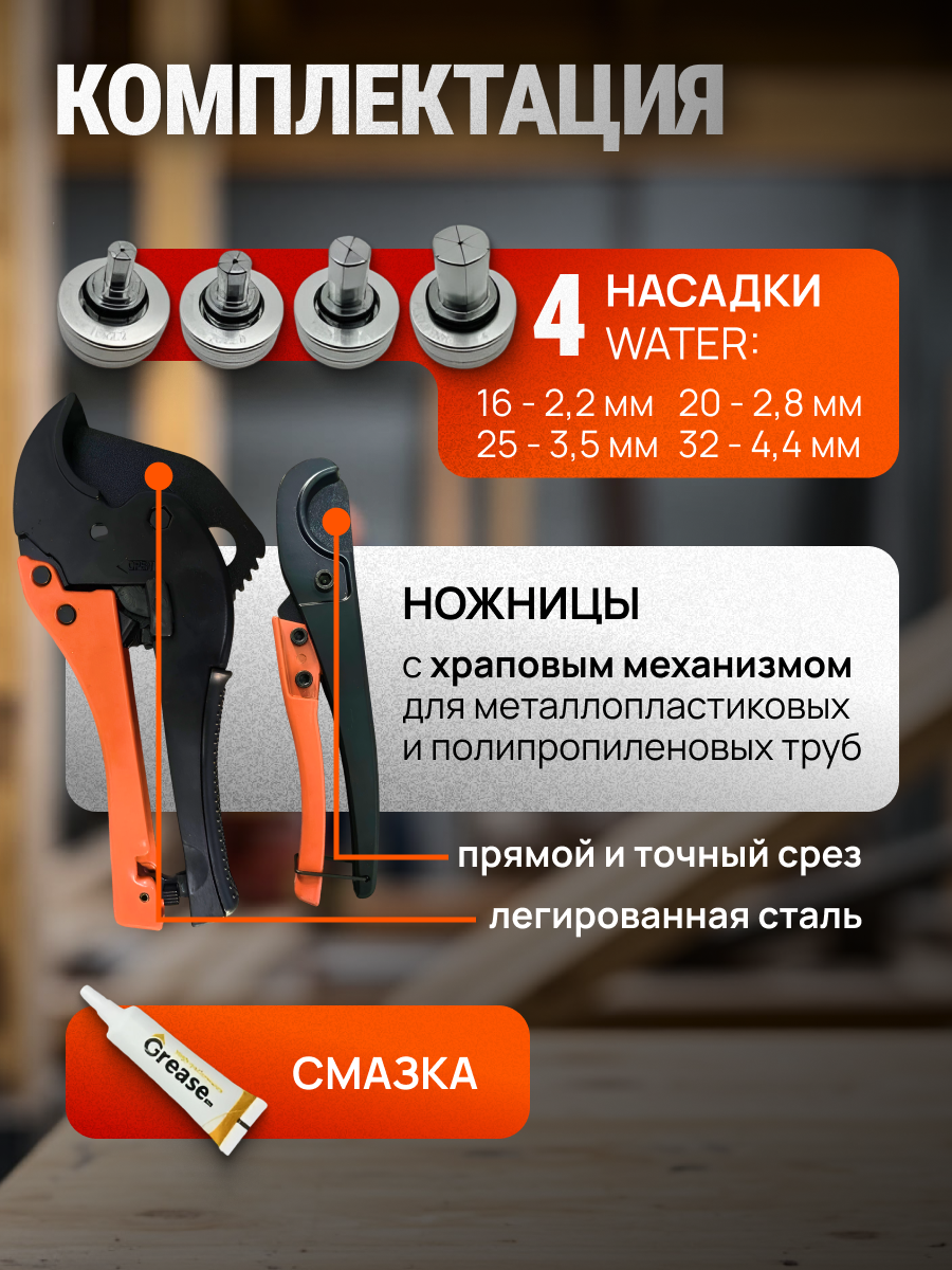 - Ножницы для резки труб диаметром 16-32 мм 2 шт;