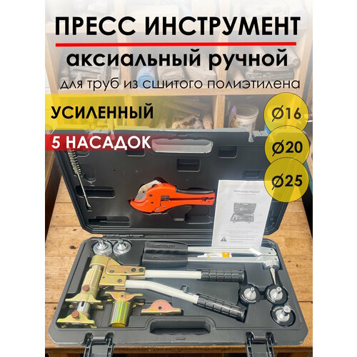Инструмент отличается доступностью, эргономичностью и практичностью. Прекрасно подходит для ежедневного монтажа. Монтажный инструмент для аксиальных фитингов. Набор сантехнических инструментов. Комплект инструмента для труб рех. Комплект инструмента для пекс труб. Аксиальный пресс инструмент.