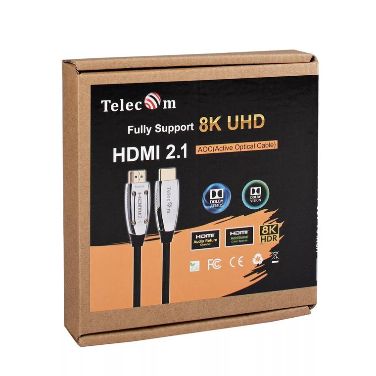 Оптический кабель Telecom TCG2120-5M HDMI 19M/M имеет длину 5 метров, что позволяет удобно расположить устройства на расстоянии друг от друга без потери качества изображения.