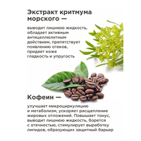 Экстракт критмума морского — способствует выведению лишней жидкости и обладает активным антицеллюлитным действием, препятствует появлению отеков, придает коже гладкость и упругость.