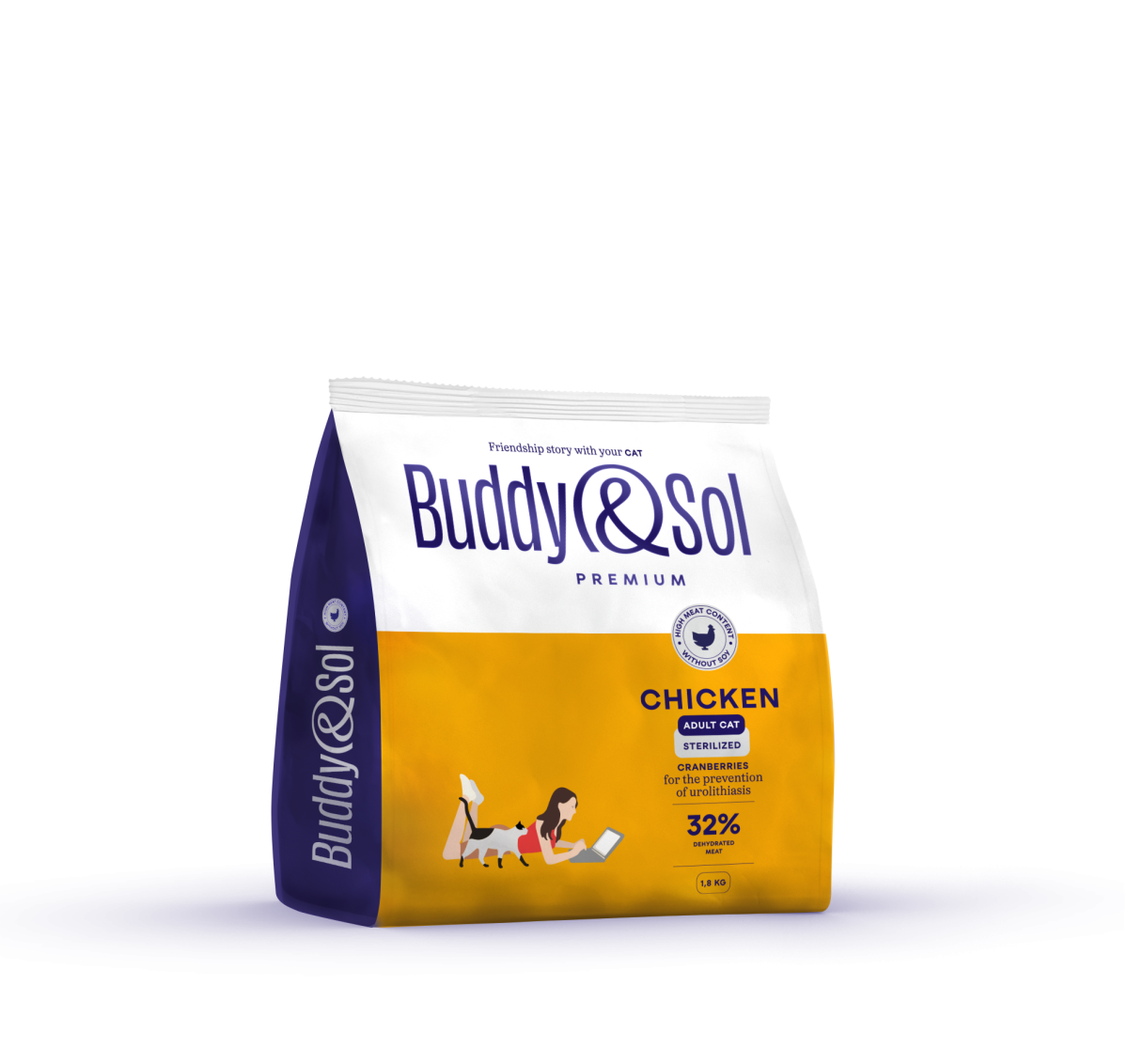 Акция -20проц. BUDDY SOL PREMIUM STERILIZED 1,8 кг сухой корм для стерилизованных кошек с курицей, 88248 (1 шт): сравнение цен, характеристики, фото, актуальное наличие и цены.
