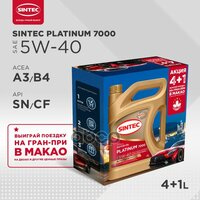 SINTEC PLATINUM SAE 5W-40, API SN/CF производится из синтетических базовых масел и высокоэффективного многофункционального пакета присадок. Синтетические базовые масла обеспечивают отличные низкотемпературные и термоокислительные свойства, что обеспечивает лёгкий пуск в самых суровых погодных условиях и увеличенный интервал замены масла, даже при высоких нагрузках на ДВС. Противоизносные и моюще-диспергирующие присадки последнего поколения гарантируют непревзойдённую защиту и чистоту двигателя на весь срок службы масла. Применение: В турбированных и атмосферных бензиновых двигателях легковых автомобилей, а также легких коммерческих автомобилей и автобусов, где рекомендованы смазочные материалы категории ACEA A3/B4 или API SN/CF (и предыдущих категорий) класса вязкости SAE 5W-40 Одобрения и соответствия ACEA A3/B4; API SN/CF BMW Longlife-01; MB 229.5; Porsche A40; Renault RN 0700/0710; VW 502.00/505.00 АО «автоваз»; ЗФ ООО «УАЗ»