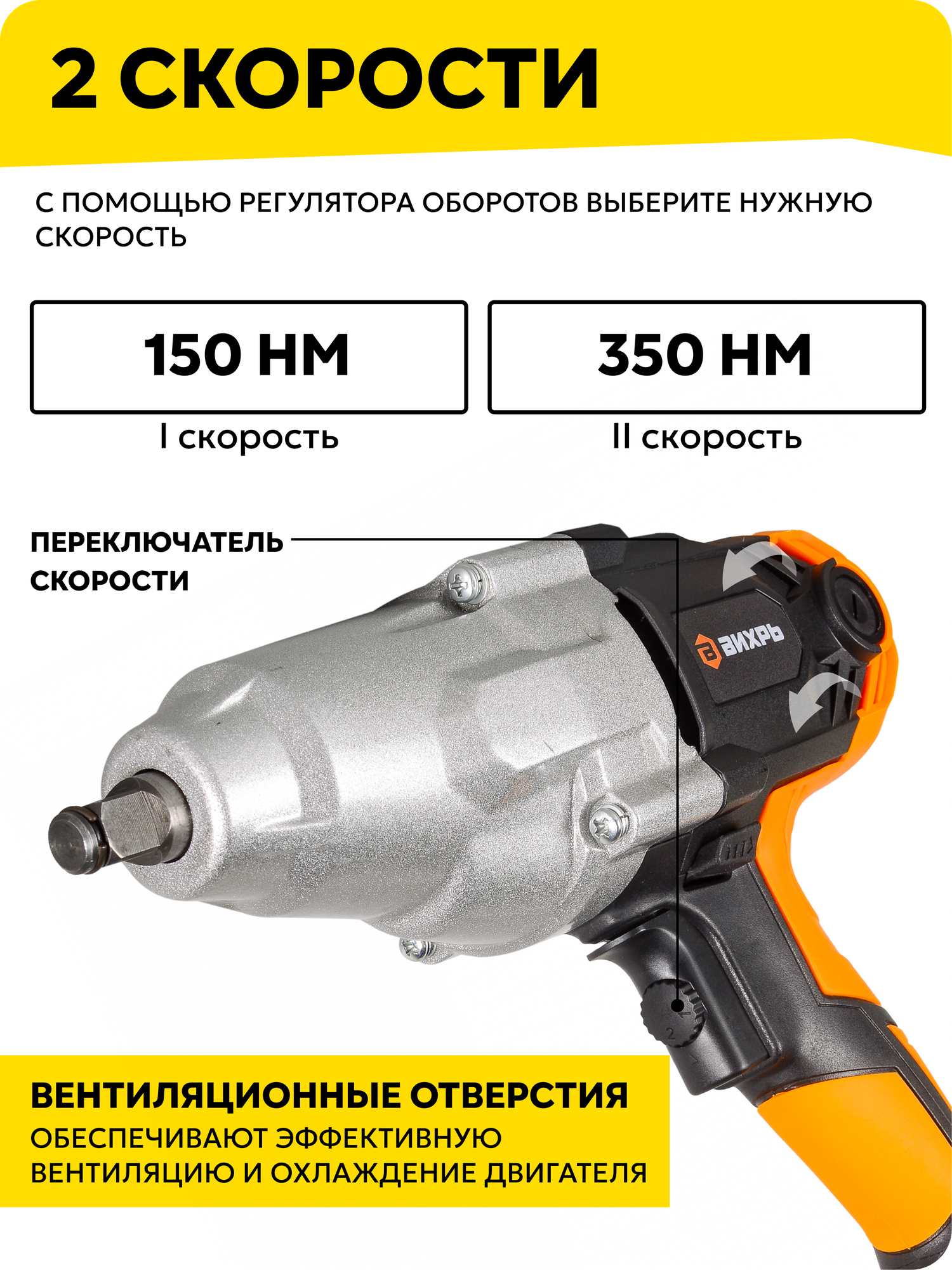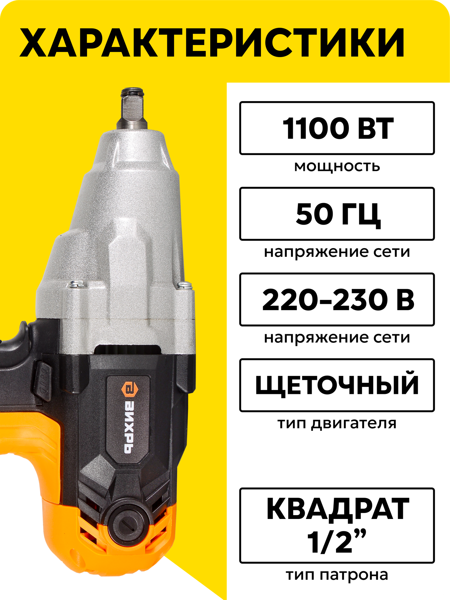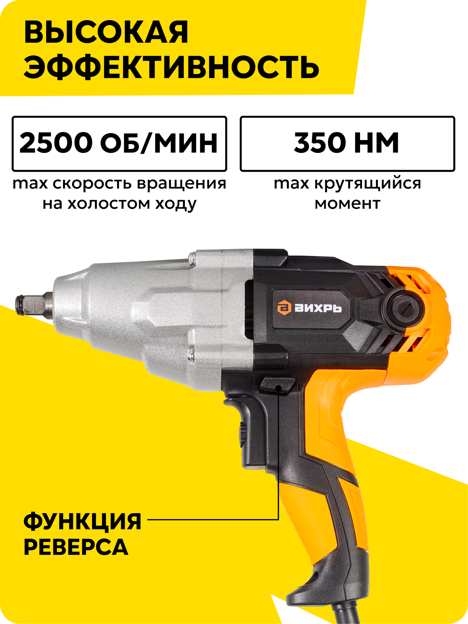 Гайковерт сетевой ударный Вихрь ГС-350НМ поможет быстро открутить и закрутить гайки и болты при помощи специальной оснастки.