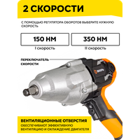 - С помощью регулировки степени затяжки можно настроить гайковерт для конкретных нужд.