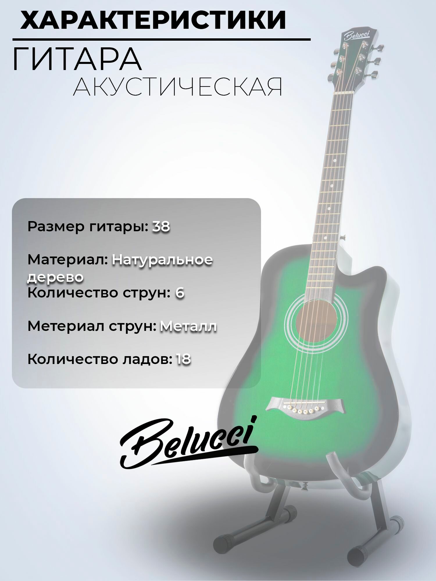 Гитара акустическая 38″ Зелёная (Набор начинающего гитариста, Belucci BC3810 GR): сравнение цен, характеристики, фото, актуальное наличие и цены.