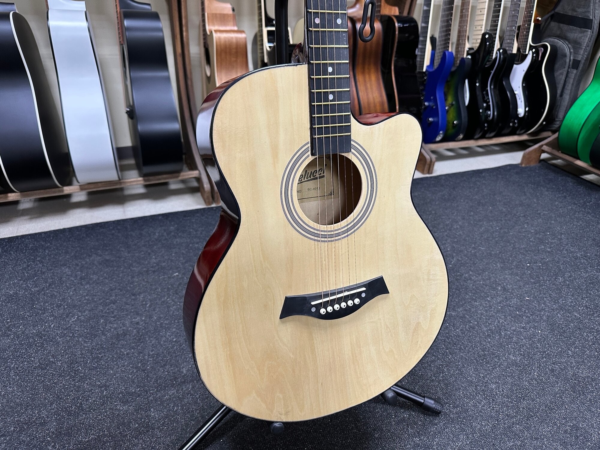 Новинка от уже полюбившегося многими Российского бренда Belucci акустическая гитара Belucci BC4010 N Гитара отлично подходит для начинающих гитаристов и в отличии от прошлых моделей имеет полноразмерный корпус 40" - 4/4 Данная модель имеет металлические струны легкого натяжения, что способствует легкому освоению инструмента даже совсем начинающими гитаристами, без боли в пальцах, при этом такие струны достаточно звонкие и хорошо подходят для игры в разных стилях от бардовской песни до рок музыки В гитаре также имеестя анкерный стержень внутри грифа, это создает дополнительную жесткость конструкции и предотвращает возможность деформации грифа, а так же позволяет регулировать высоту струн