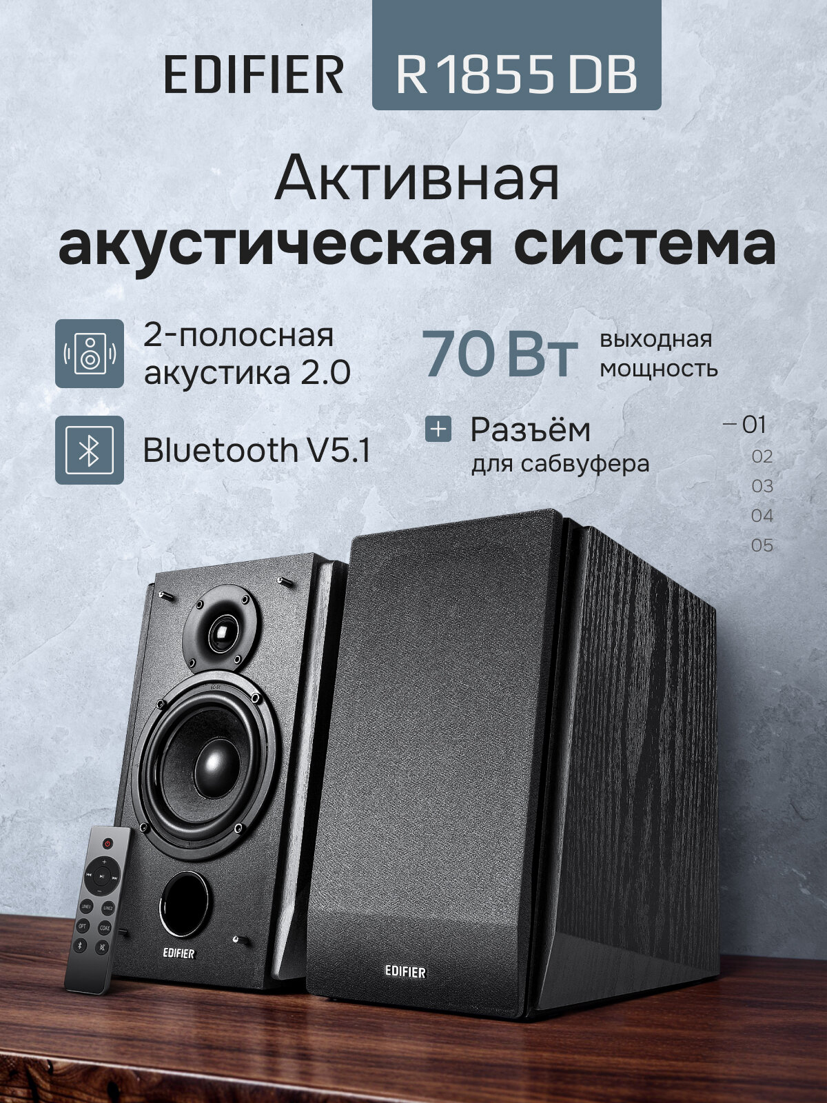 Купить Акустическая система 2.0 EDIFIER R1855DB, беспроводная, 2 полосы, 70 Вт, чёрная с доставкой по всей России. Акустическая система 2.0 EDIFIER R1855DB, беспроводная, 2 полосы, 70 Вт, чёрная: сравнение цен, характеристики, фото, актуальное наличие и цены.