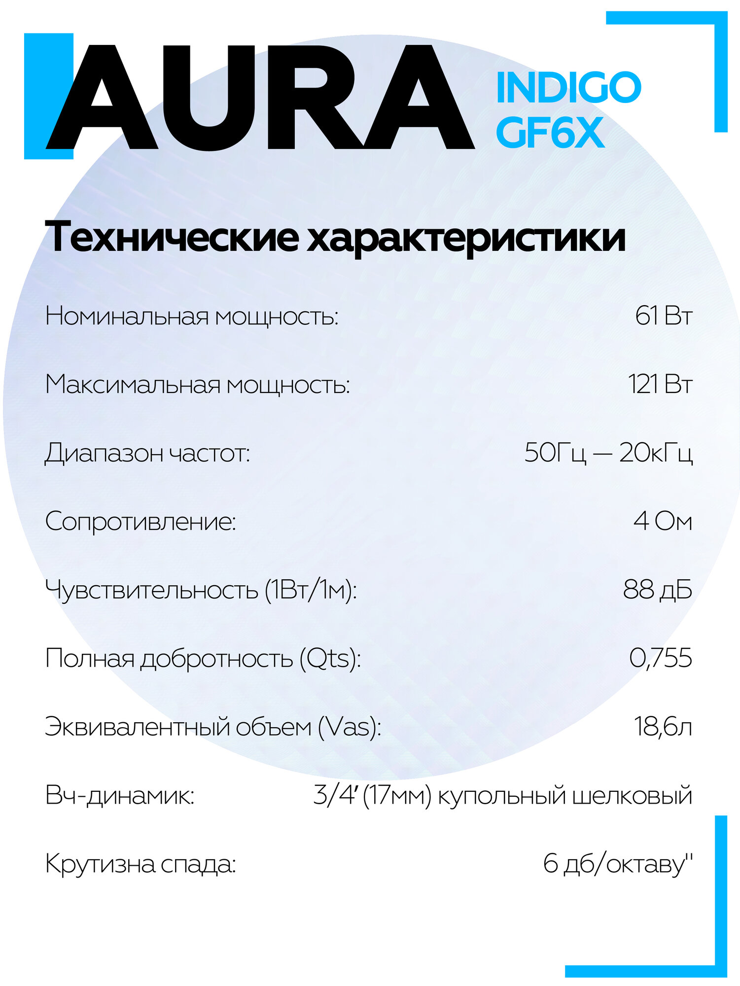 Акустическая система Aura INDIGO-GF6X 6,5″ (16,5 см) Коаксиальная акустика