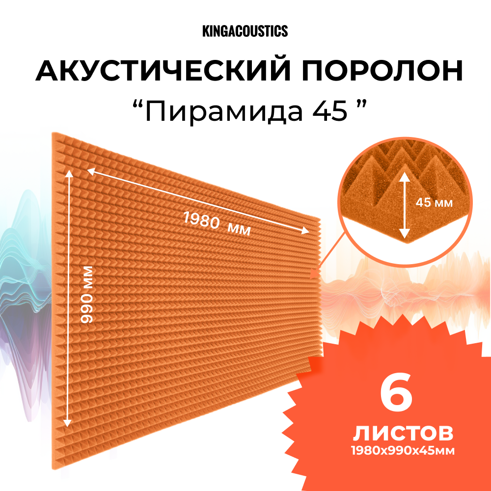 Акустический поролон Пирамида 45мм 6 листов 1980х990х45мм оранжевого цвета: сравнение цен, характеристики, фото, актуальное наличие и цены.