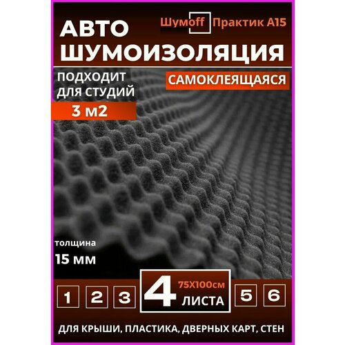 Купить Акустический поролон «Шумофф», Практик, А15, 15мм, 75см x 1м, 4шт с доставкой по всей России. Акустический поролон «Шумофф», Практик, А15, 15мм, 75см x 1м, 4шт: сравнение цен, характеристики, фото, актуальное наличие и цены.