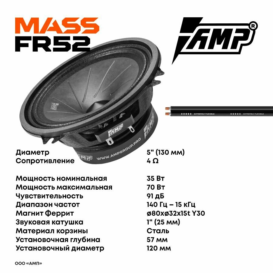 Акустика AMP MASS FR52, широкополосная, 13см, с усилителем, 35Вт, 91дБ, 4Ом: сравнение цен, характеристики, фото, актуальное наличие и цены.