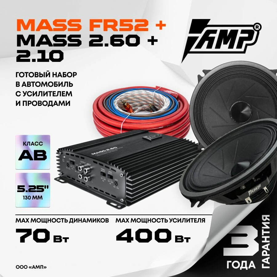 Купить Акустика MASS FR52 13 см вместе с усилителем + Провода для подключения Mass 2.10 с доставкой по всей России. Акустика MASS FR52 13 см вместе с усилителем + Провода для подключения Mass 2.10: сравнение цен, характеристики, фото, актуальное наличие и цены.