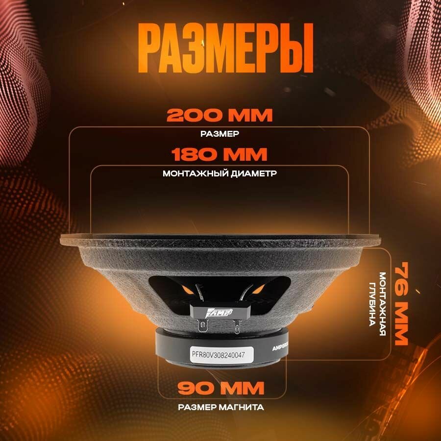 Акустика эстрадная AMP PROMO FR80 ver.3 - это высококачественная автомобильная акустика, которая обеспечивает мощное и чистое звучание. Улучшенная версия акустики FR80LC, PROMO FR80 отличается строгим дизайном, подчеркивающим качество данной акустики. Акустика имеет чувствительность 92 дБ и сопротивление 3 Ома, что позволяет ей играть даже от штатных ГУ и маломощных усилителей. Рекомендуется использовать фильтр HPF на 63-80 Гц -12 дБ/окт. (2м порядком). Акустика широкополосная (штатная), имеет типоразмер 20 см (8 дюйм.), что обеспечивает широкий диапазон частот от 60 до 15000 Гц. Номинальная мощность составляет 55 Вт, а максимальная - 110 Вт. Акустика оснащена двумя динамиками, каждый из которых имеет внутренний диаметр 184 мм и глубину корпуса 200 мм. Материал СЧ-диффузора - прессованная целлюлоза, а НЧ-диффузора - прессованная целлюлоза. В комплект поставки входят динамики 2 шт, инструкция и упаковка. Цвет товара - черный матовый. Акустика эстрадная AMP PROMO FR80 ver.3 - это отличный выбор для тех, кто ценит качественное и мощное звучание в своем автомобиле.