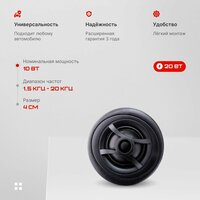 Представляем вашему вниманию автомобильную акустику от производителя AMP. Динамики серии AMP MASS созданы для замены штатной аудиосистемы, с целью достижения более объемного, насыщенного, качественного и детализированного звучания. Модель AMP MASS TW10 – это высокочастотные динамики (твитеры), обладающие качественным шелковым диффузором. Благодаря шелку достигается кристально чистая и естественная детализация звучания. Динамики, колонки в машину или автомобильная акустика – вы можете называть их как угодно. Однако самым главным является то, что все мы хотим добиться лучшего звучания в своем любимом авто. Хороший звук в автомобиле – важная составляющая для приятных поездок. А благодаря динамикам AMP вы сможете услышать свои любимые песни, треки и композиции в новых красках. Ведь эти динамики в машину обладают качественным, насыщенным, детализированным и объемным звучанием. Испытай новые эмоции при прослушивании своей любимой музыки с новыми пищалками AMP. Номинальная мощность – 10 Вт. Максимальная мощность – 20 Вт. Воспроизводимый диапазон частот – 1,5 кГц – 20 кГц. Сопротивление (импеданс) – 4 Ом. Чувствительность – 90 дБ. Тип акустики – высокочастотный динамик (твитер, пищалка). Монтажный диаметр – 41 мм. Монтажная глубина – 16 мм.