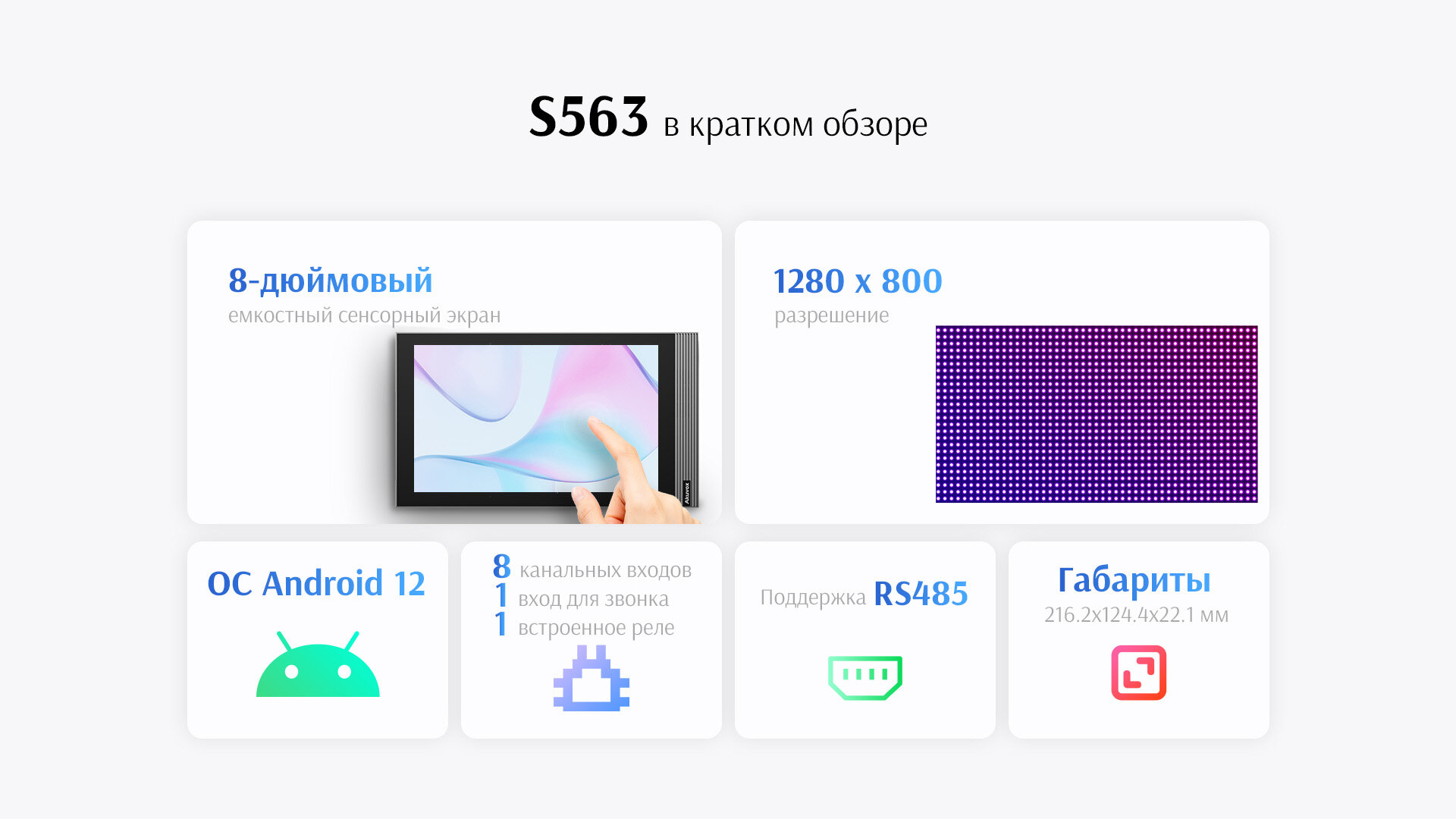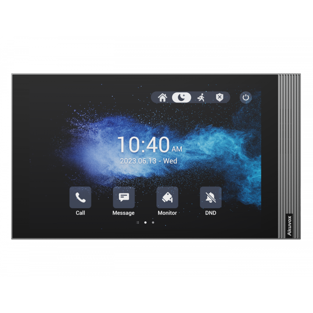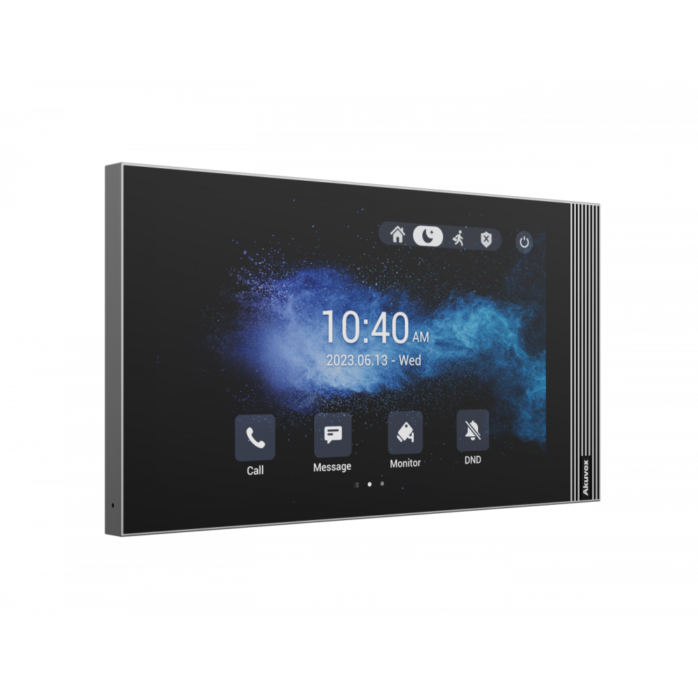 Akuvox S563W - это 8-дюймовый монитор для помещений, работающий под управлением операционной системы Android 12. Он оснащен исключительным динамиком и сенсорным дисплеем с высоким разрешением, что обеспечивает непревзойденное аудиовизуальное качество внутренней связи. Его стильный и компактный дизайн органично вписывается в современные дома.