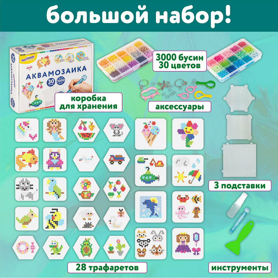 Купить Аквамозаика, 30 цветов, 3000 бусин, в колорбоксе, юнландия, 663780, 663780 с доставкой по всей России.