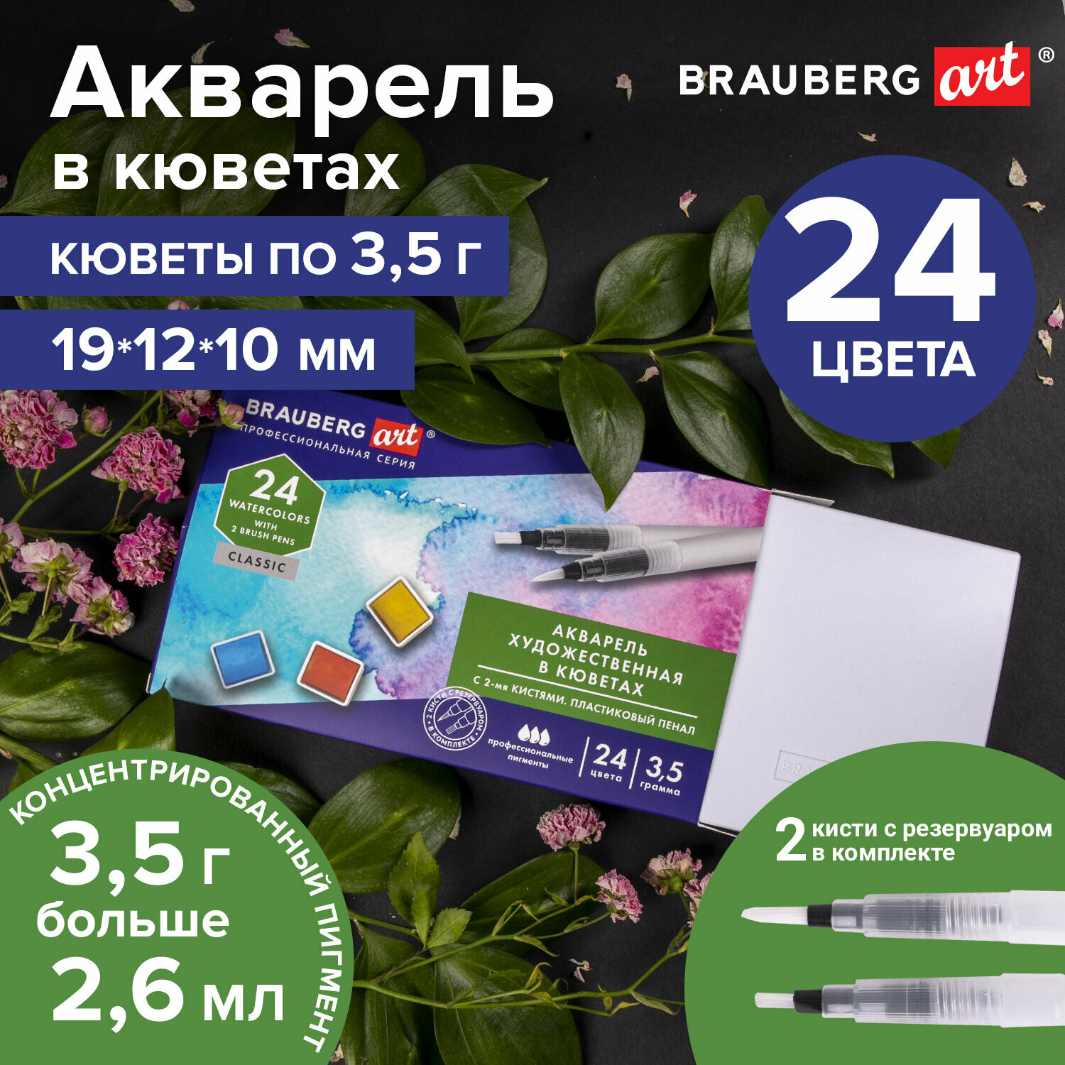 Художественная акварель профессионального качества в кюветах BRAUBERG ART CLASSIC предназначена для живописи.