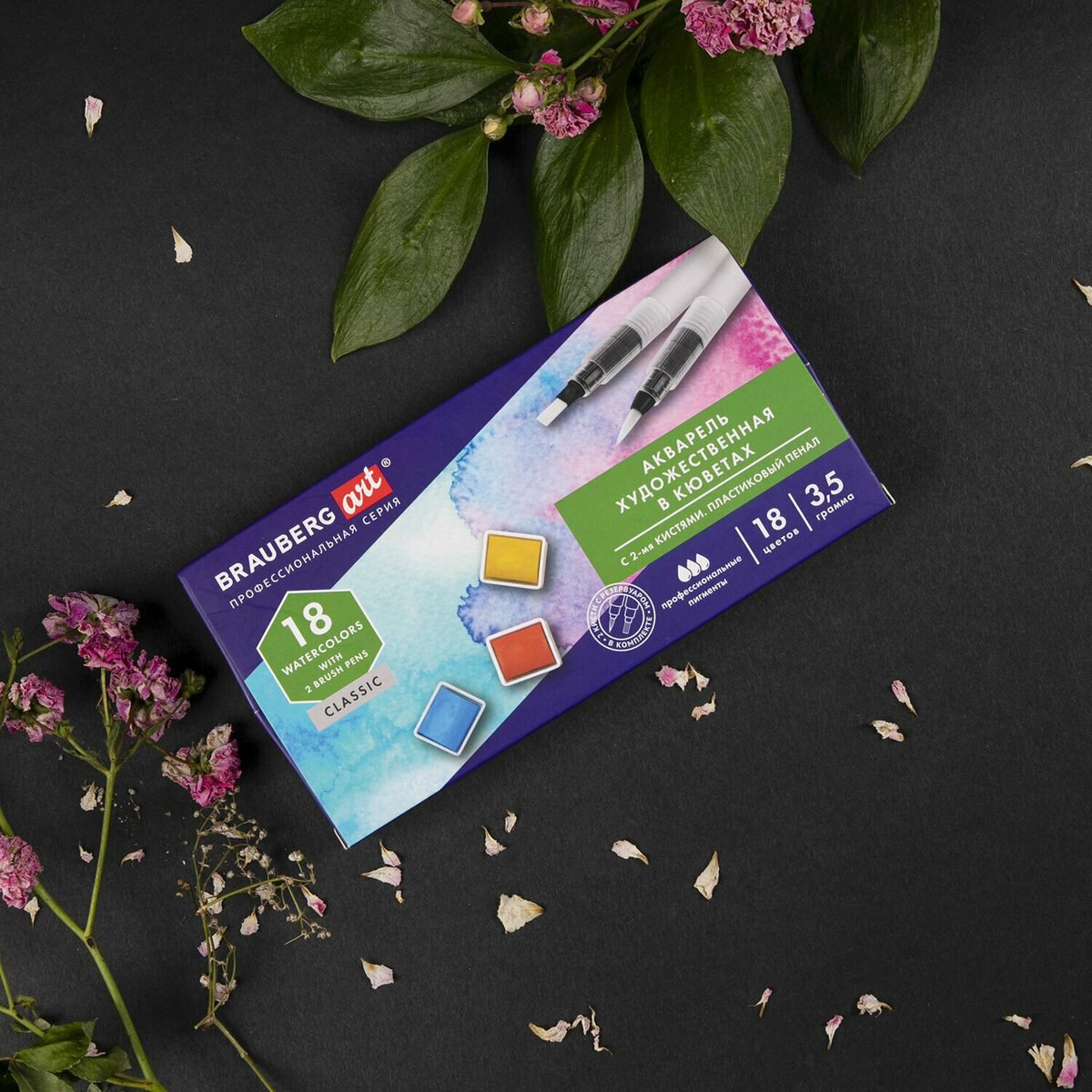 Краски акварельные художественные 18 цветов Brauberg Art Classic, по 3,5г, в кюветах, пластиковый кейс (191769), 18 уп.: сравнение цен, характеристики, фото, актуальное наличие и цены.