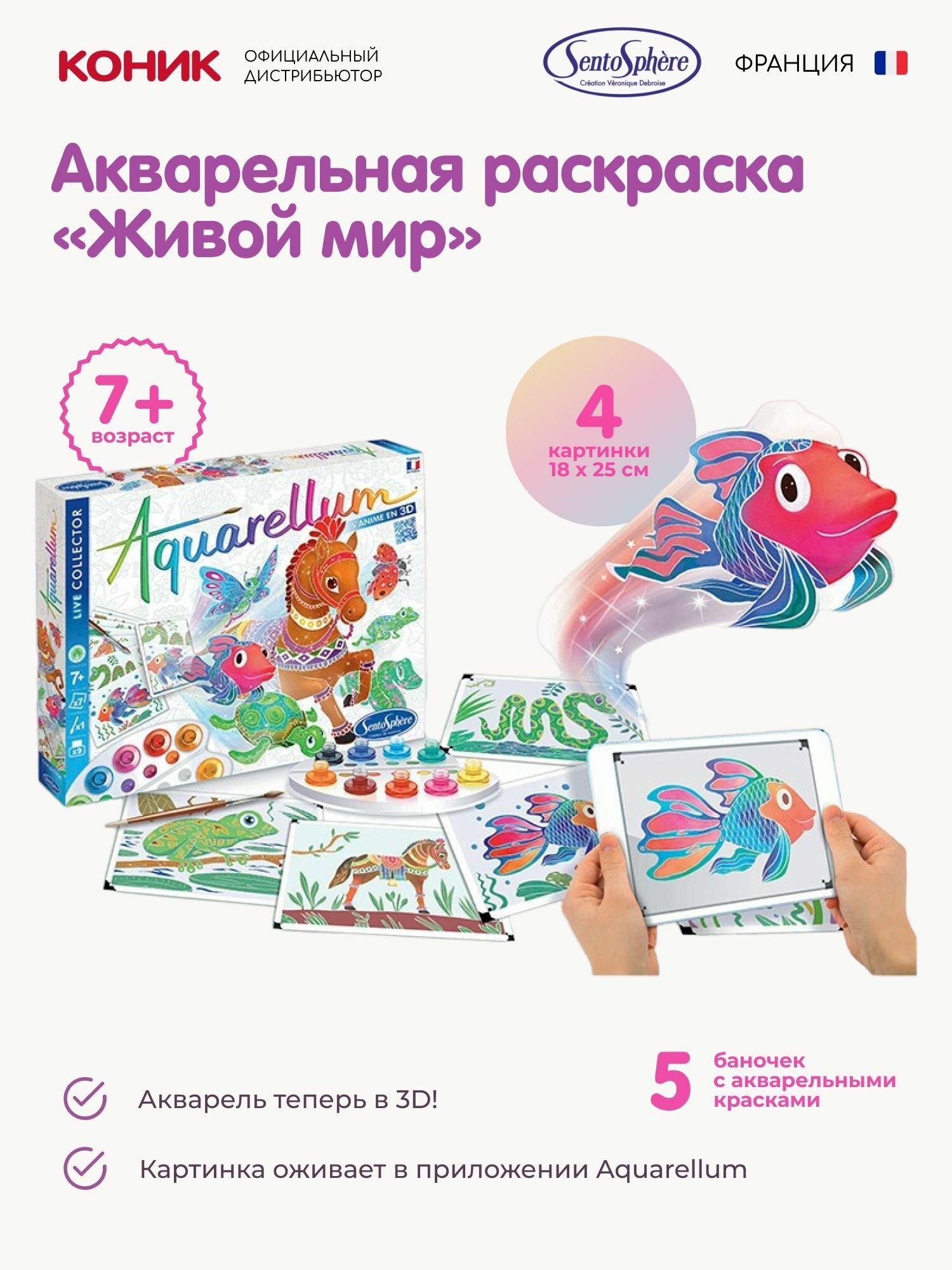 Купить Акварельная раскраска «Живой мир» Sentosphere, 4 рисунка, 5 цветов, от 7 лет с доставкой по всей России.